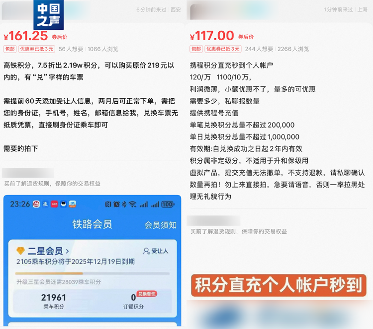 如今,当您乘坐火车、飞机等交通工具出行时,您可以通过注册会员来赚取里程积分。有些人选择存小钱在平台兑换礼物,而另一些人则通过积分兑换免费门票来赚“生意”。记者了解到,付费积分交易存在于铁路、民航、酒店等多个领域。那么积分可以共享吗?消费者在二手电商平台购买积分会面临哪些风险?买火车票有30%的折扣吗?积分与门票的兑换已成为“积分生意”。近日,有网友发帖称,某二手电商平台低价出售12306铁路会员积分换取车票,引发热议。记者致电铁路客服12306,工作人员澄清,里程积分不能转让,但可以通过添加“受让人”的方式供他人使用。豪维r、一旦添加“但丁”,将无法立即兑换门票。有两个月的审核期,积分退款和兑换有限制。 12306客服:积分不可转让。只需打开应用程序,铁路会员即可将乘客添加到“指定”页面并为其他人购买车票。但需要60天才能生效,并且需要提前添加乘客。积分机票不可退款,可以改签,但需支付 1000 积分改签费。与火车旅行的会员规则类似,航空公司工作人员也告诉中国之声,航空公司对于会员常旅客积分的使用场景有明确的要求。航空公司工作人员:通常,您可以将家庭成员或朋友添加为“接收者”,以便他们可以用积分兑换机票和其他服务。最多可以添加13个收件人,但是一旦添加收件人就不能再添加被删除。原本是亲朋好友间的送礼活动,被贴上“支付”的标签后,却变成了一门生意。记者在某二手交易平台上注意到了这一点,但对于火车、飞机等积分明显不能转移的产品,商家在邮箱中附加了使用规则,并要求对“转移对象”进行额外验证。他们通过解释时刻表并提供“原火车票30%的折扣”的价格来吸引人们的注意。另外,一些允许您直接发布酒店景点的出版物可以轻松吸引注意力,而无需过多宣传。 △所使用的交易平台上买卖积分的网上积分账户已被冻结。买方遭受了“金钱和财产损失”。来自河南省的张先生通过社交平台得知自己可以用钱购买酒店积分,并根据卖家的帖子进行了购买。 “我买了超过10,000分,即1000多元。我没有买积分来以更便宜的价格预订酒店。 “我的积分不够,所以想让他们回去换房间。”张某故意在二手货交易平台上找到了值得信赖的商家购买积分,但在实际交易过程中,酒店对积分的录入提出了质疑。“酒店只允许积分在家人和朋友之间转让,并不想购买或出售积分。 “对于数量较多的积分,酒店会要求对方提供身份信息,但与卖家联系后,卖家拒绝提供这些信息。”张先生说。最终,张先生未能提供所谓高额积分转让者的身份,酒店冻结了其会员资格。张先生表示,自己损失巨大,维权成本较高。此次交易对提供付费积分服务的会员店没有影响。但消费者却受到了影响。压力。 “如果账户没有被冻结,卖家可以正常交易,商店的商誉也会增加。如果账户被冻结了,顾客就不互动,假装不知道,又咬人。和我的情况类似,没有提供任何解锁信息。如果你不说明积分从哪里来,积分就会退回到你的账户,你可以用它们卖给别人。” △张先生的聊天截图不受保护,信息泄露,没有办法保障您的权益。消费者面临多重风险。本报记者搜索黑猫投诉平台发现,不少人在购买积分后遇到兑换流程问题,我了解。一位业内人士表示:“商家通常会通过提供远低于市场价格的价格来欺骗乘客。”看到这样的宣传,首先要提高警惕。二是优先通过合法渠道购票。与此同时,一些主要的OTA消费者的出行服务也更安全。”付费积分存在着不可忽视的个人信息泄露风险。北京数字经济与数字治理法研究会副秘书长黄银秀认为,无论转移还是转移,消费者的个人信息都必须提供给商户进行后续操作,这可能会涉及风险。 “目前大部分平台对积分转让都有限制,需要提供姓名、手机号、身份证号等个人信息,过程中个人信息可能会泄露。此外,所谓积分转让实际上是盗用他人账户的积分,可能会引发法律纠纷和相应责任。”黄银秀说。 △网络截图 黄英旭进一步表示,平台对于积分的使用有详细的规则,会员使用积分时默认接受平台相关规则。什么时候非法经营行为时有发生,法律定义不明确,消费者维权困难。虽然积分转让和转移仍然是合法的“空白”,但平台应特别关注有偿转让积分的商家,并在必要时采取适当的限制,以保护消费者的权益。 “一般来说,积分有偿转让并不直接违反法律的强制性规定,但违反了积分使用规则,属于灰色地带。平台应重点关注转让积分的门店,并提供消费提醒。消费者自行购买积分可能违反了积分使用规则,也可能缺乏事后保障。”付费交易,可能成为失去全部财产的受害者,也可能成为失去全部财产的犯罪者。o 违反了规则的红线。虽然乍一看似乎有好处,但实际上却存在账户冻结、信息泄露、维权手段缺乏等重大弊端。收益超过损失。 (中国之声、中央广播电视台)